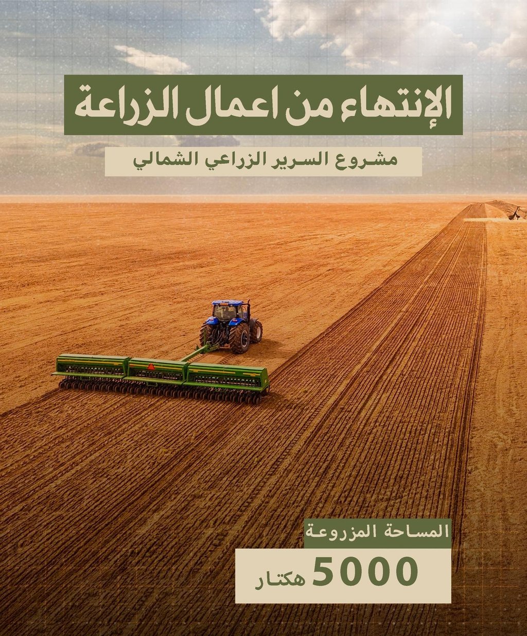 بحمد الله وتوفيقه، تمّ الانتهاء من أعمال الزراعة، حيث تمّت زراعة أكثر من 5000 هكتار في هذه المرحلة. إن هذا الإنجاز يعبّر عن حجم العمل الميداني والجهود المبذولة من قبل جميع الفرق المعنية.